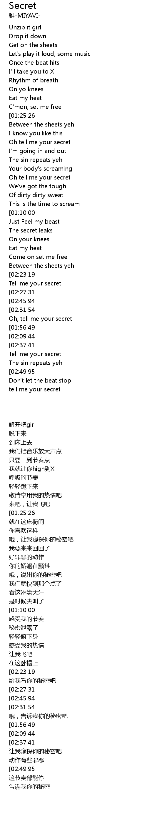 | [02:21.10][02:37.41] | Between the sheets yeh |