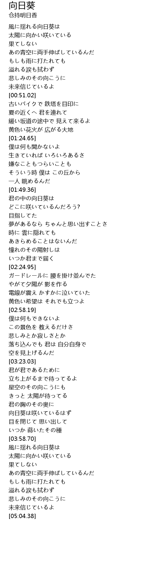 | [04:29.90] | fēng yáo xiàng rì kuí |