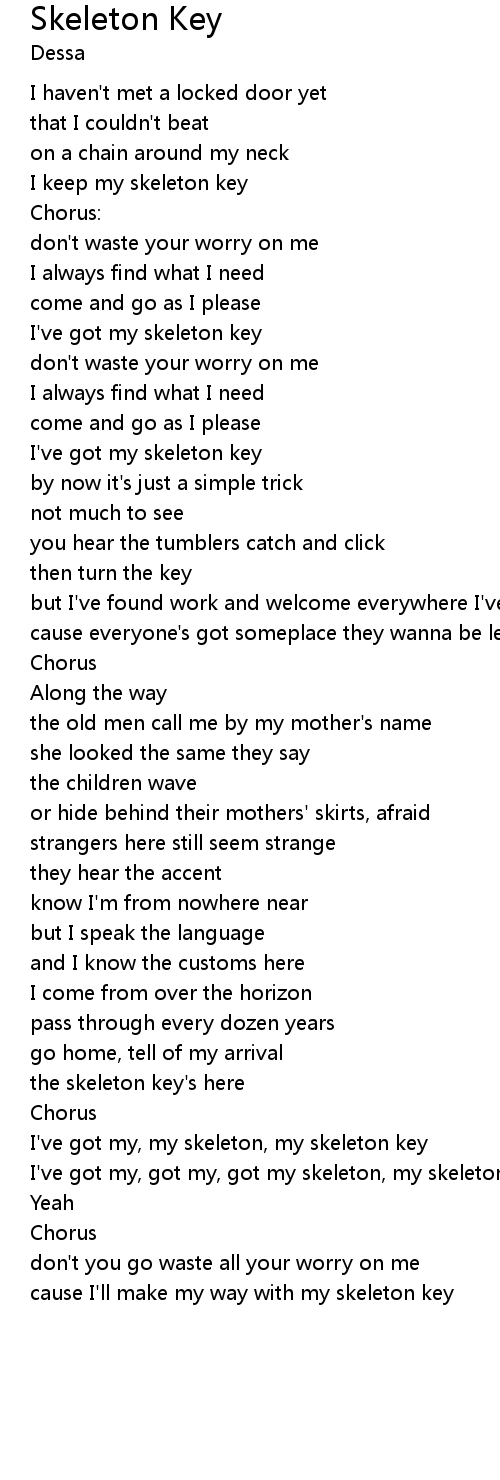 I've got my, got my, got my skeleton, my skeleton key |