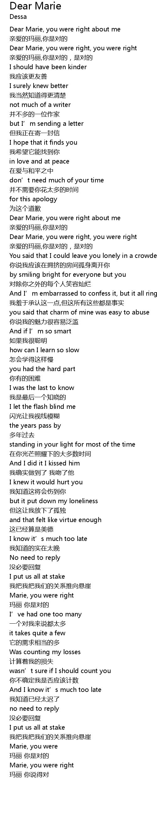 | qīn ài de mǎ lì, nǐ shì duì de | |
