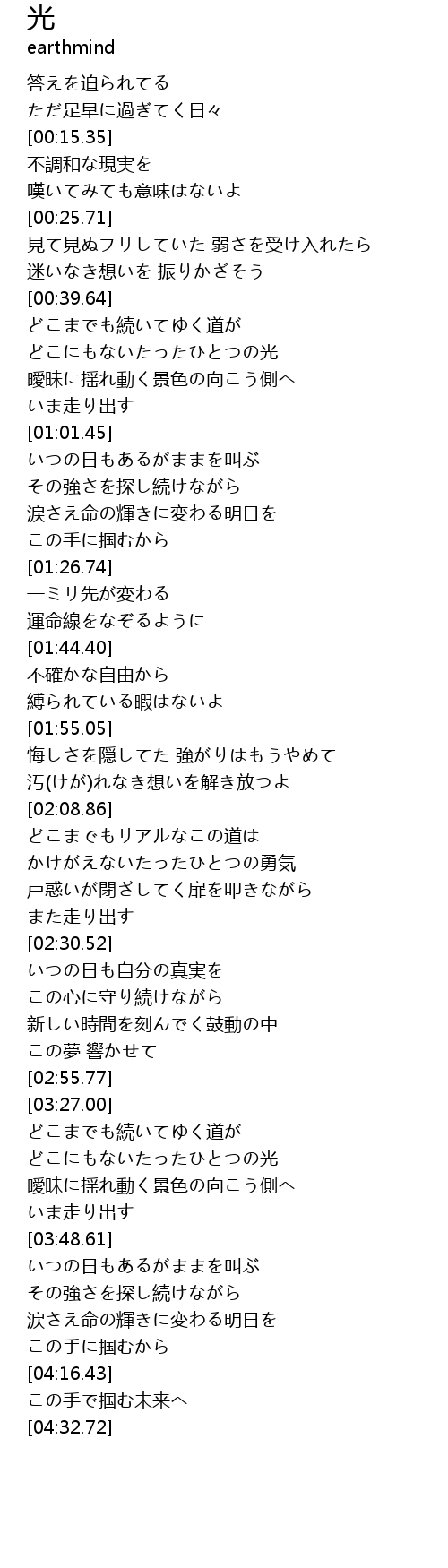 | [03:48.82] | いつの日もあるがままを叫ぶ |