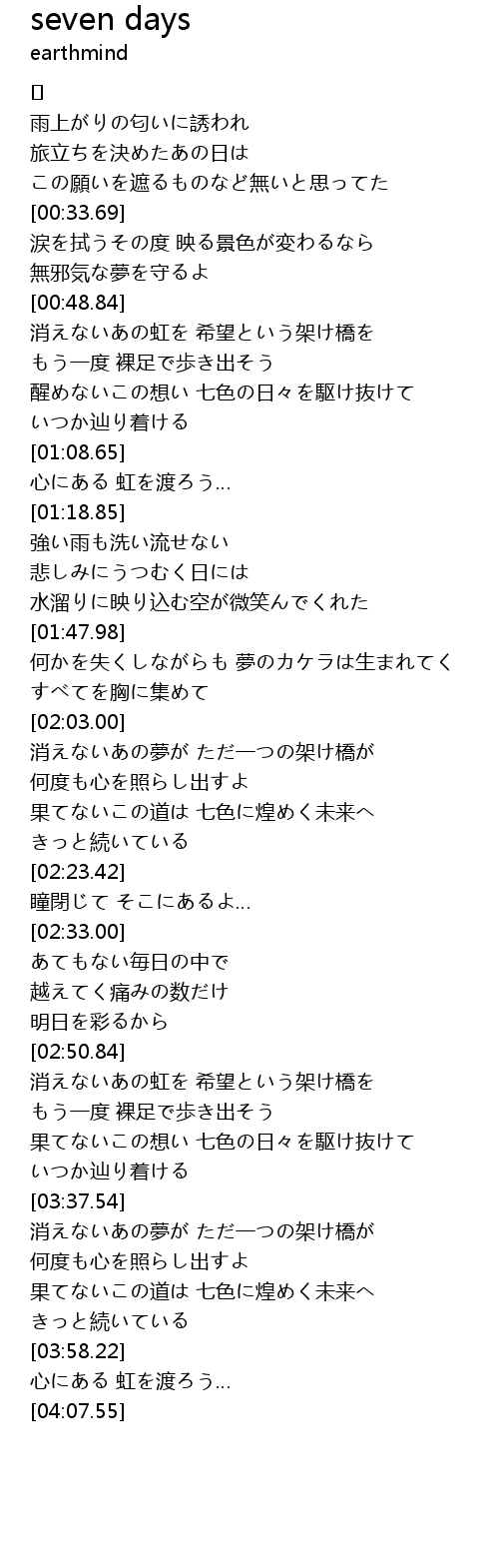 | [03:27.77] | 果てないこの想い 七色の日々を駆け抜けて |