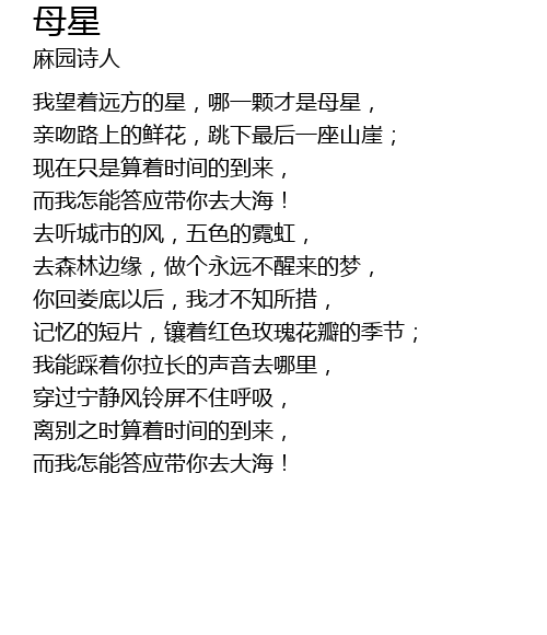 | wǒ wàng zhe yuǎn fāng de xīng, nǎ yī kē cái shì mǔ xīng, | |