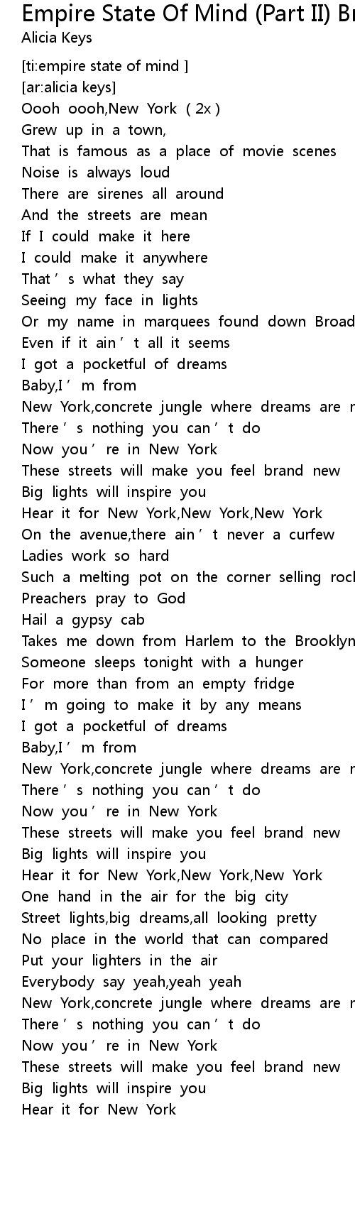 | [02:20.18] | New York,concrete jungle where dreams are made of |