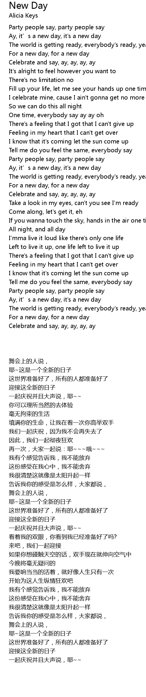 | [04:04.800] | Ay, it' s a new day, it' s a new day |