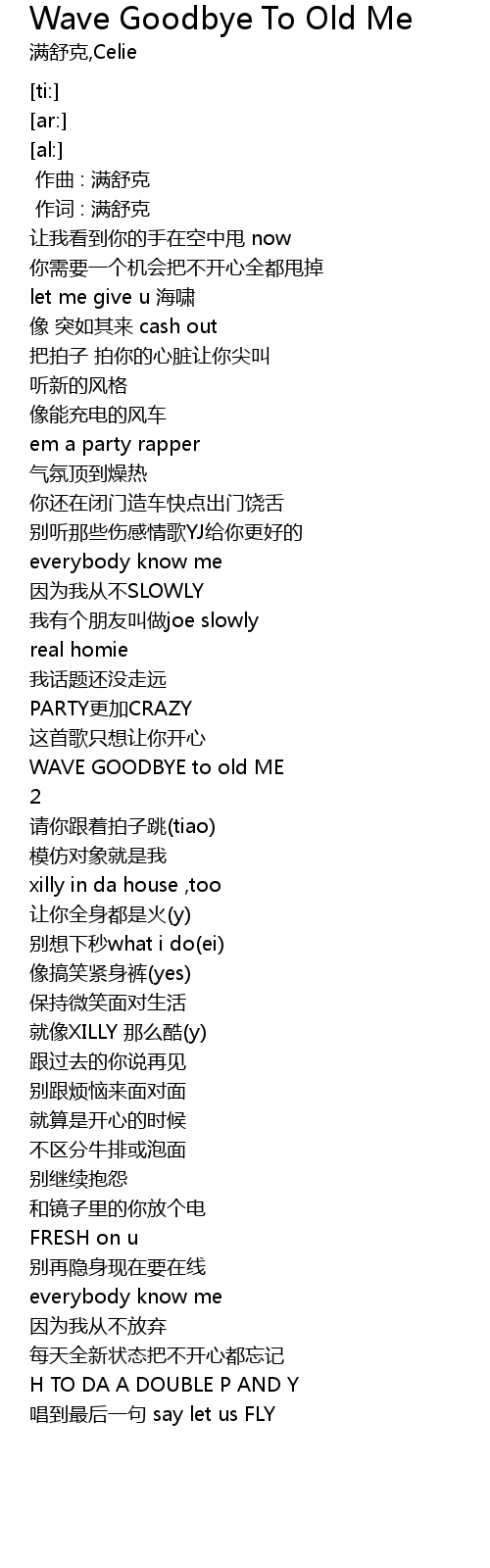 | [00:55.85] | WAVE GOODBYE to old ME |