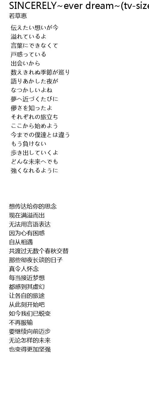 | Song | SINCERELY~ever dream~(tv-size)(dream) |