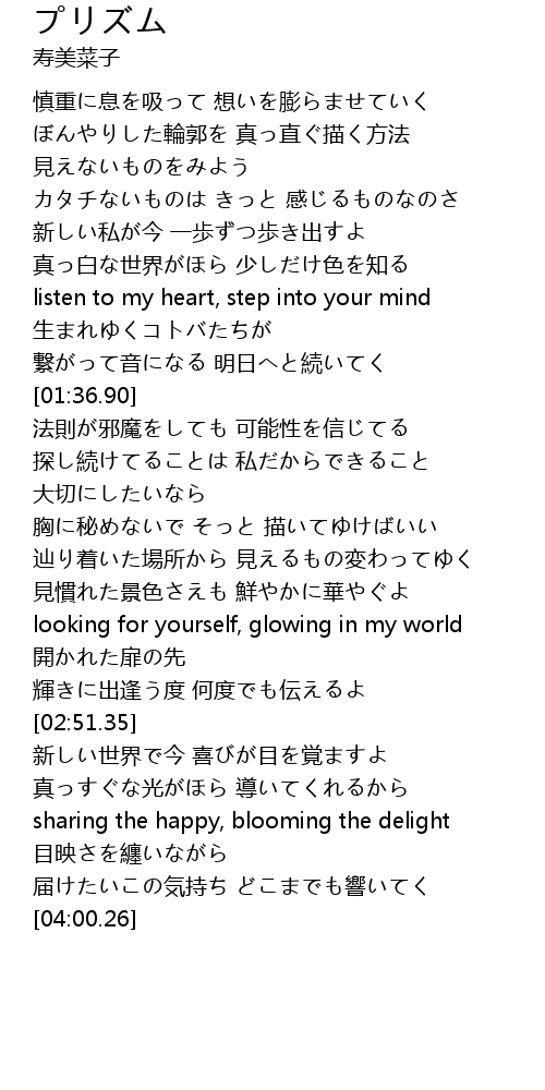 | [01:59.23] | 探し続けてることは 私だからできること |