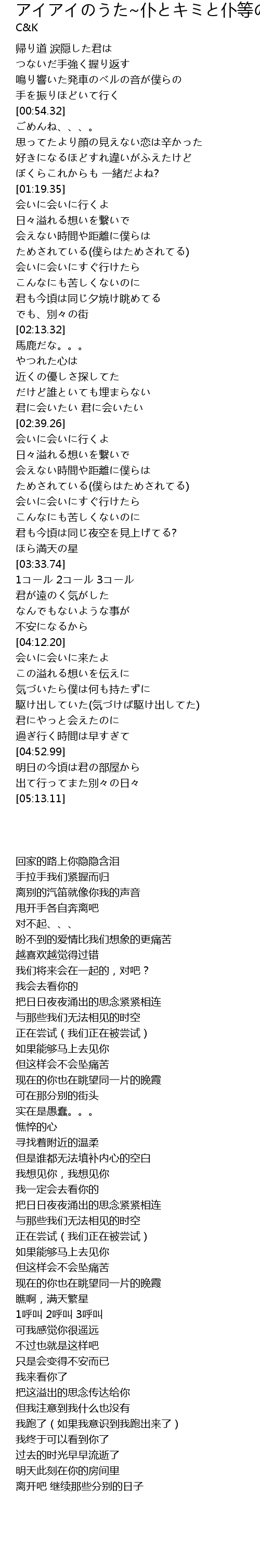 | [01:45.34] | 会いに会いにすぐ行けたら |