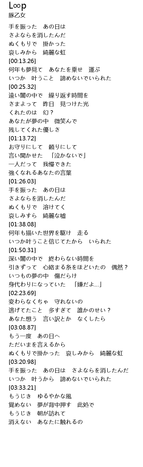 | [03:21.23] | 手を振った あの日は さよならを消したんだ |