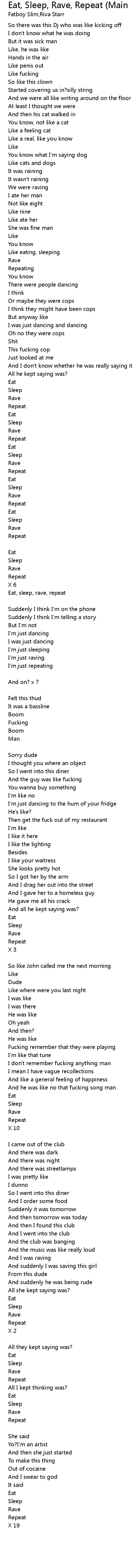 Eat, Sleep, Rave, Repeat (Main Lyrics