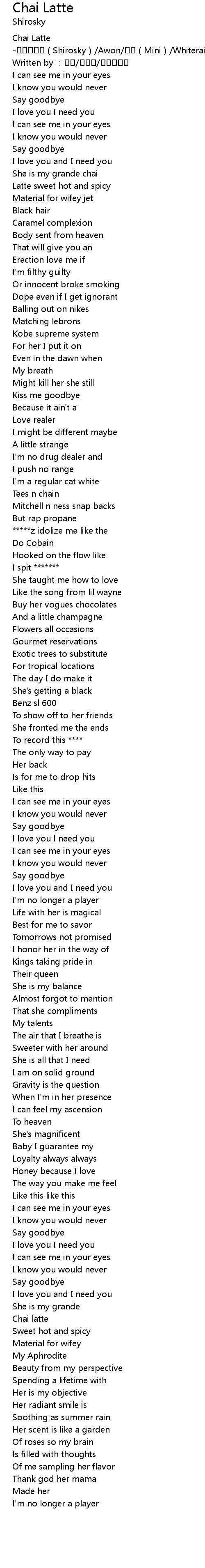 | [00:00.80] | Chai Latte Shirosky Awon Mini Whiterain |
