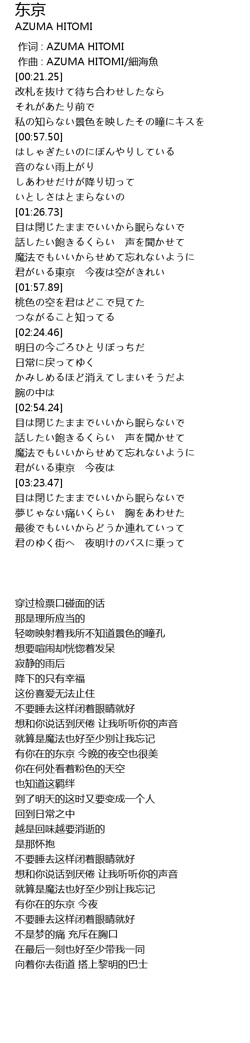 | [00:00.000] | zuò cí : AZUMA HITOMI |
