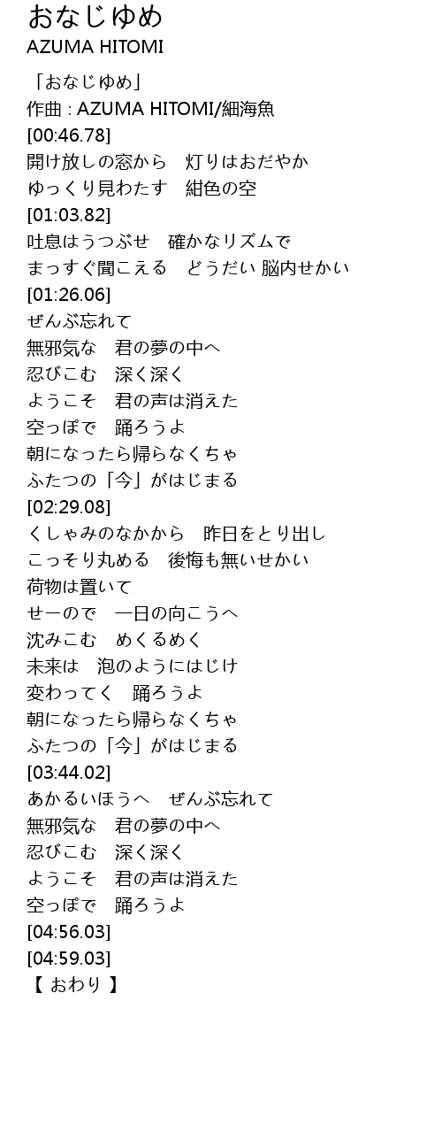 | [00:06.78] | 「おなじゆめ」 |