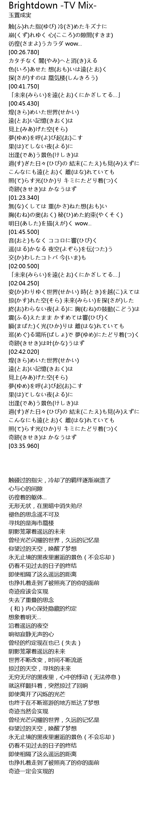 | [00:42.450] | 「未来(みらい)を遠(とお)くにかざしてる…」 |