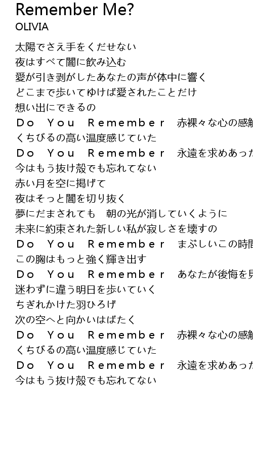 | Do You Remember あなたが後悔を見つけても | |