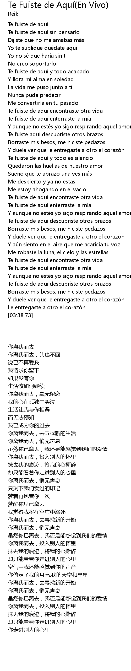 | Song | Te Fuiste de Aquí(En Vivo) |