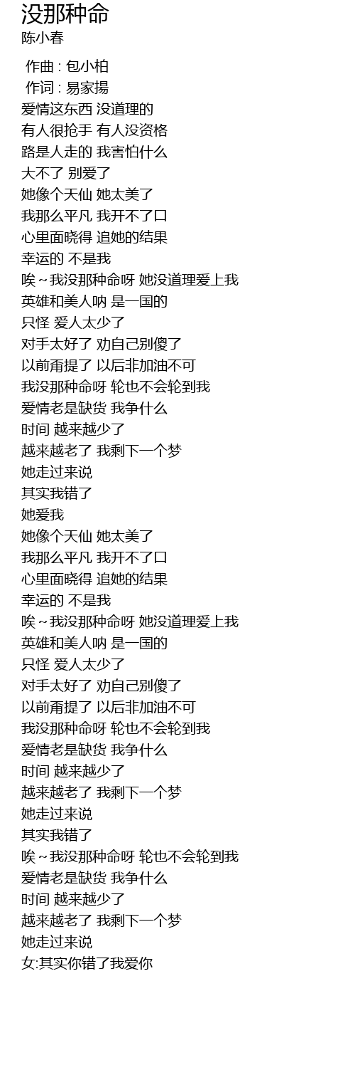 | [01:48.770] | wǒ méi nà zhǒng mìng ya lún yě bú huì lún dào wǒ |