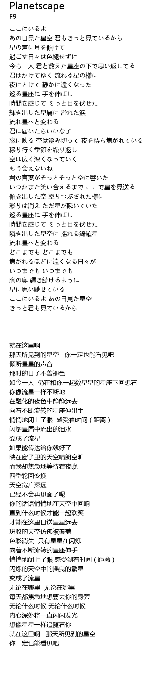| [00:13.96] | あの日見た星空 君もきっと見ているから |