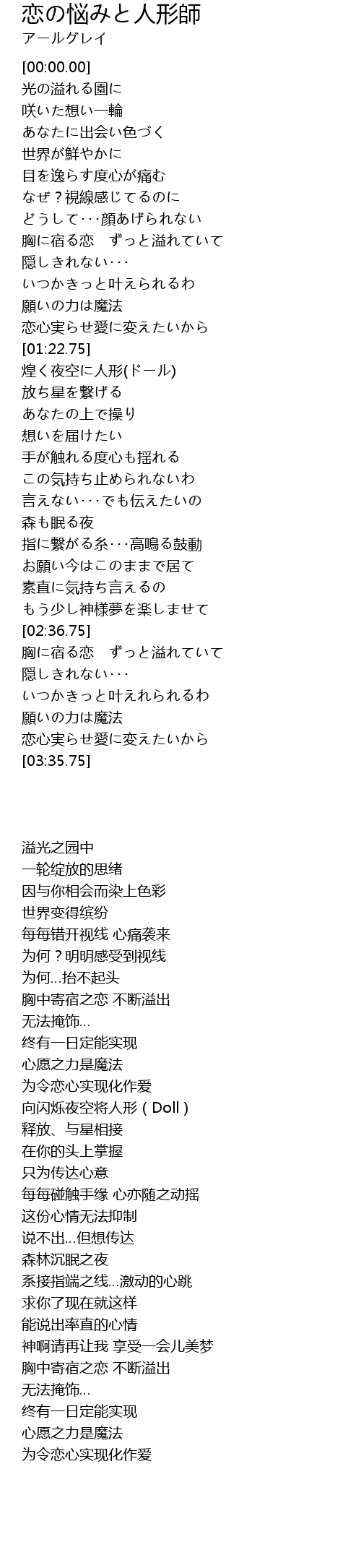 | [01:34.75] | 煌く夜空に人形(ドール) |