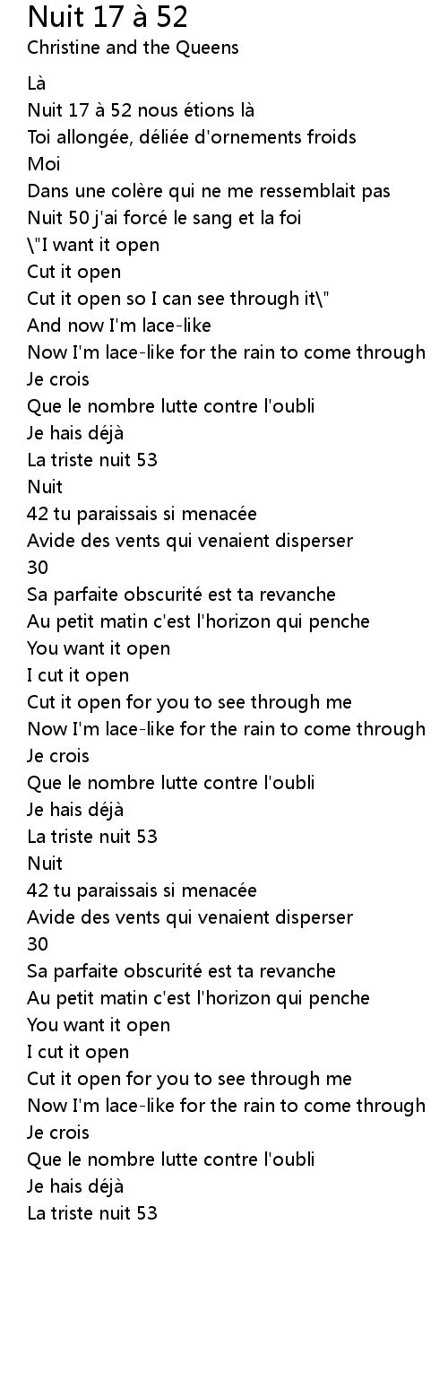| Nuit 50 j' ai forcé le sang et la foi | |