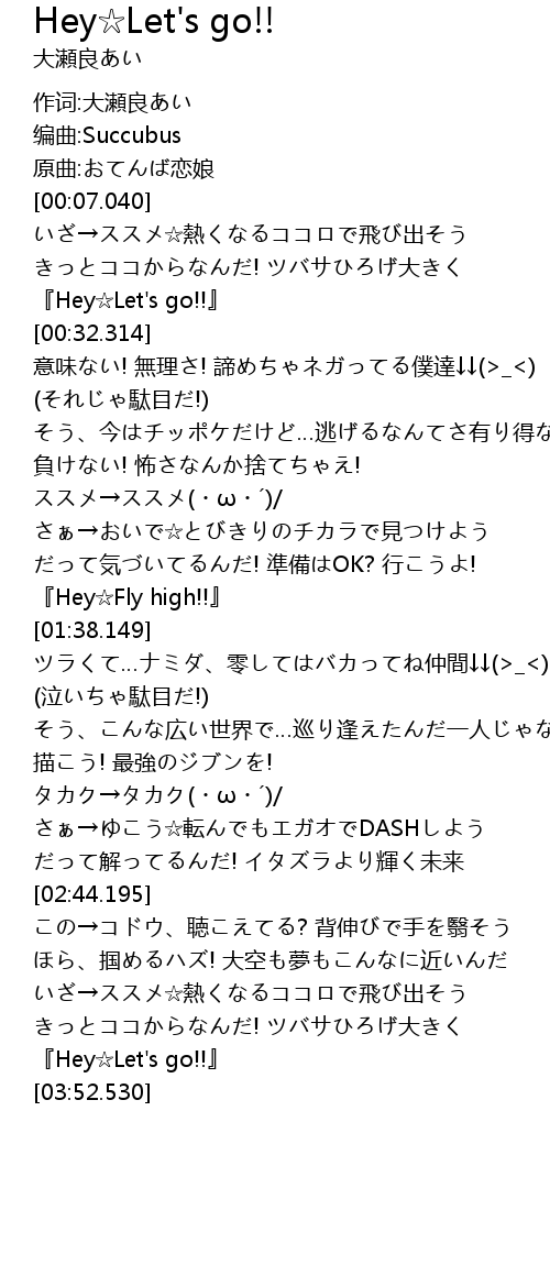 | [03:48.854] | 『Hey☆Let's go!!』 |