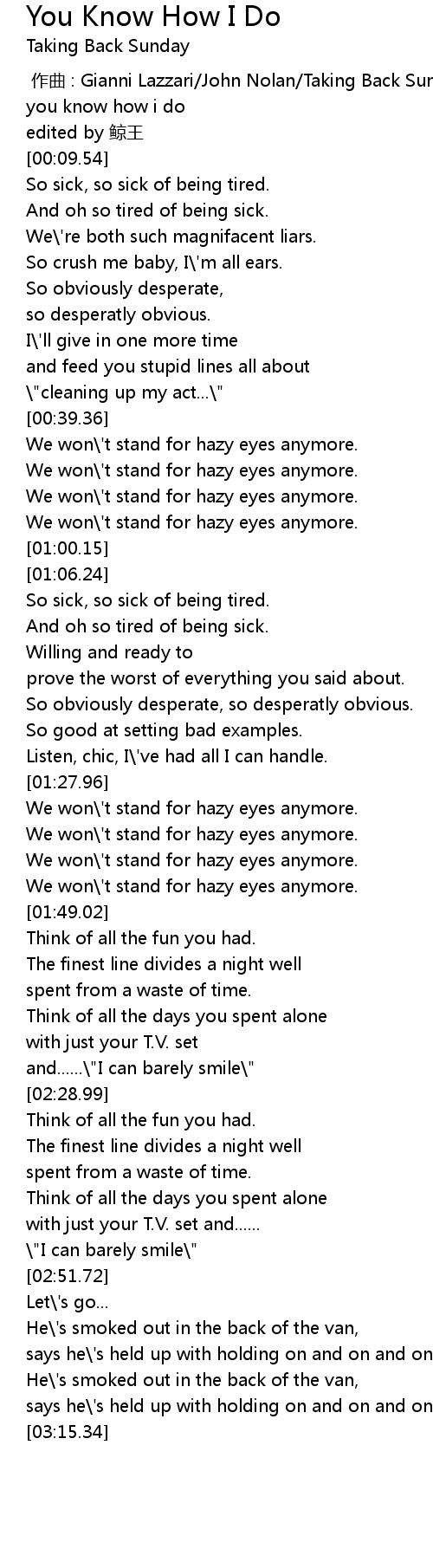 | [00:05.33] | you know how i do |