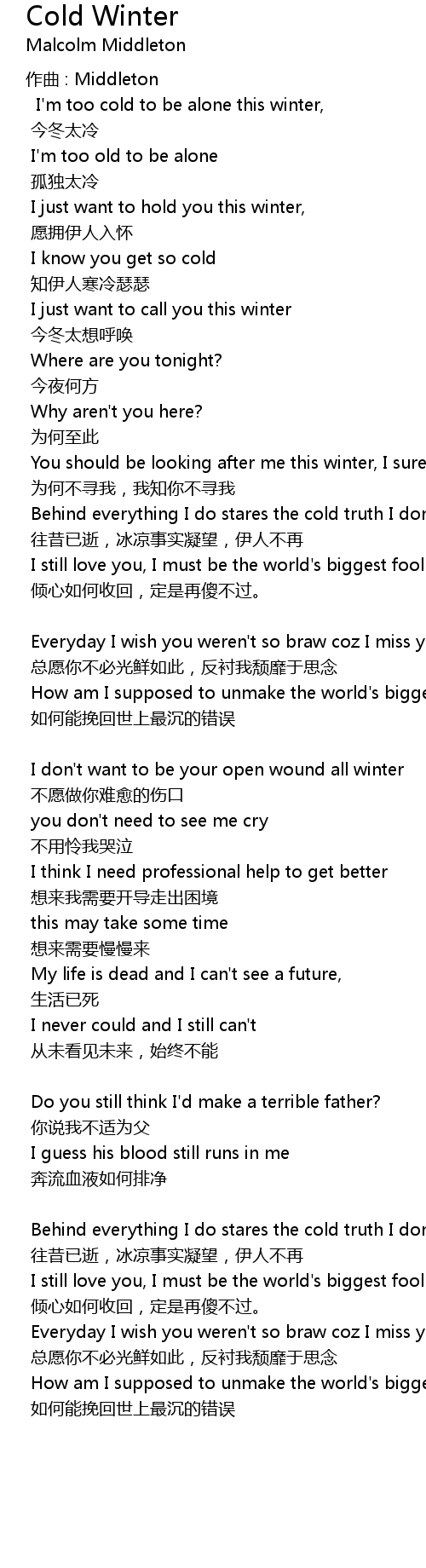 | I' m too cold to be alone this winter, | |