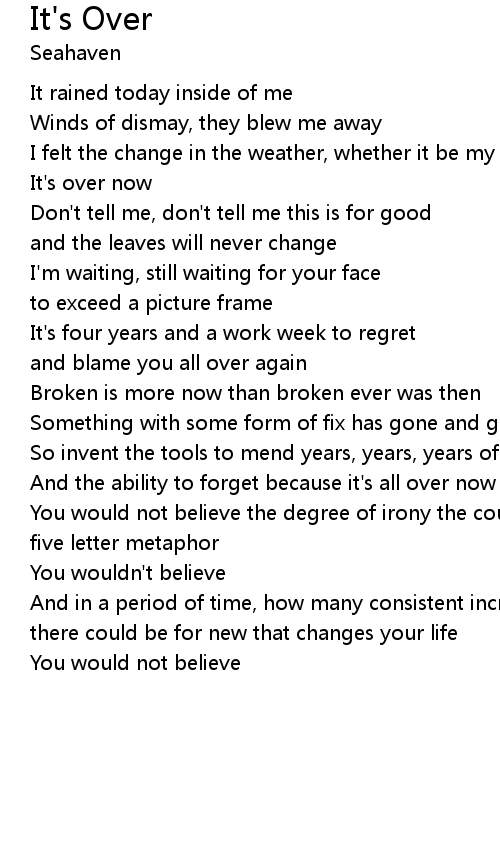 It's over now |