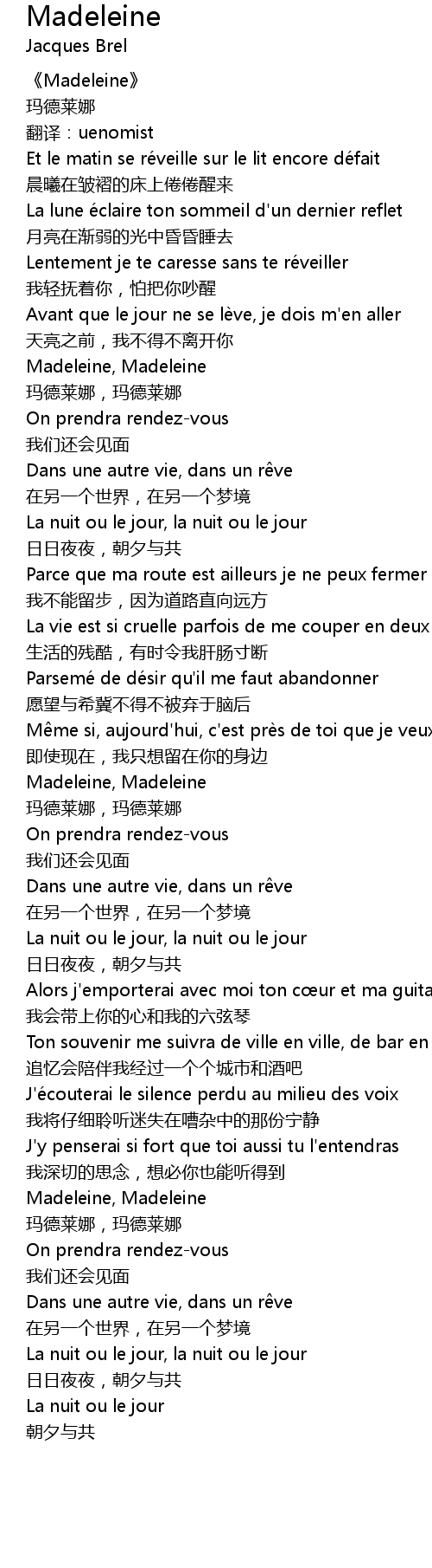 | Madeleine, Madeleine | |