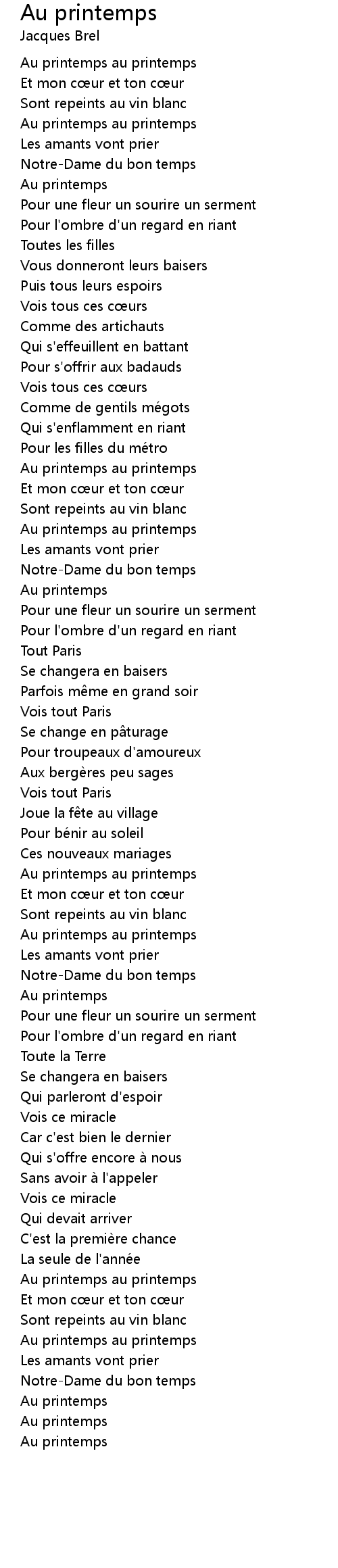 | Song | Au printemps |
