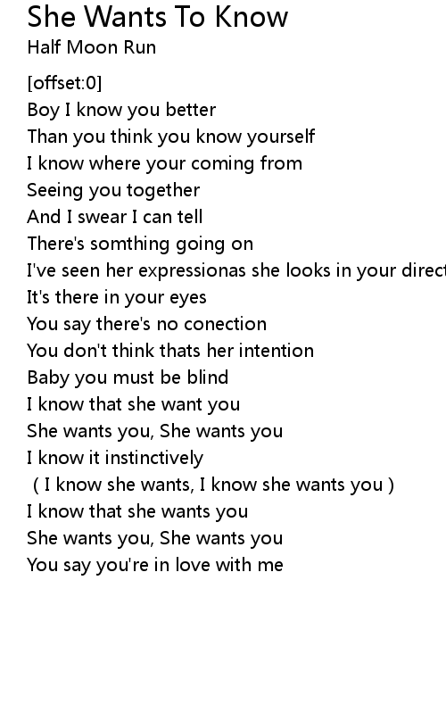 | Song | She Wants To Know |