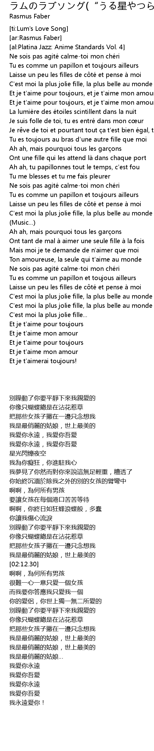 | [00:45.30] | Et je t'aime pour toujours, et je t'aime mon amour |