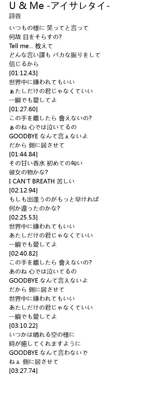 | Song | U & Me -アイサレタイ- |