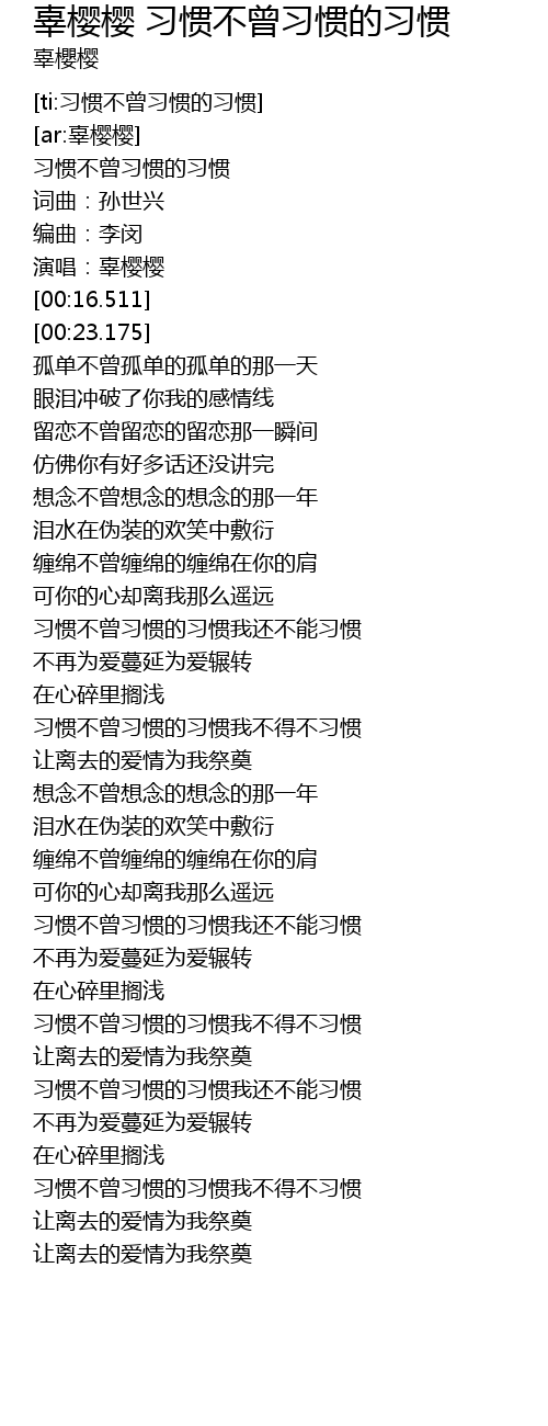 | [ti:习惯不曾习惯的习惯] | |