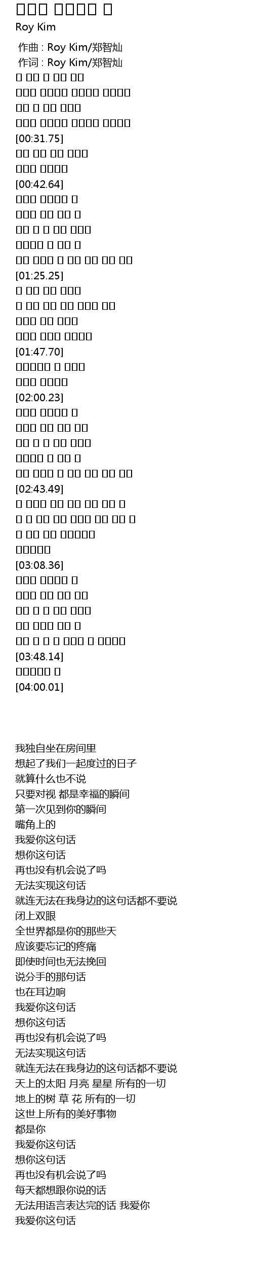 | [00:01.00] | 作词 : Roy Kim/郑智灿 |
