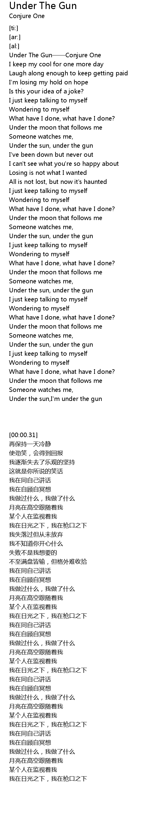 | [00:00.31] | Under The Gun Conjure One |
