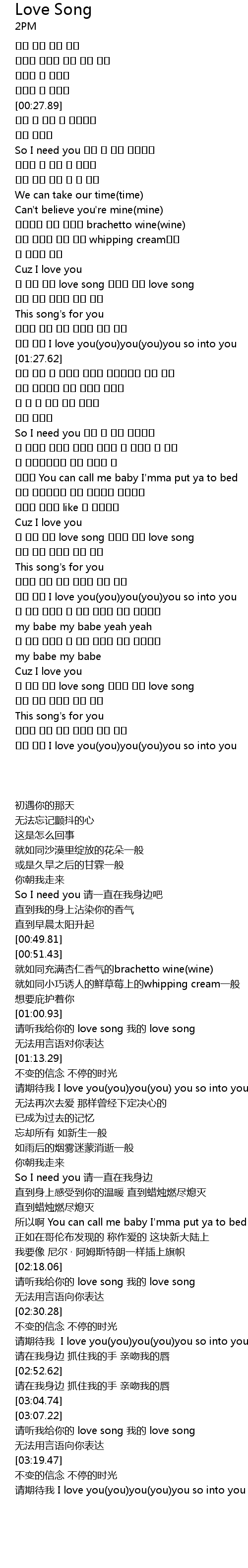 | [02:20.24] | 널 향한 나의 love song 들어줘 나의 love song |