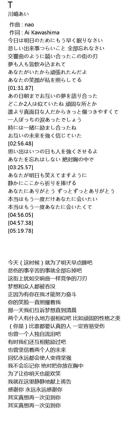 | [04:15.57] | あなたにありがとう ずっとずっとありがとう |