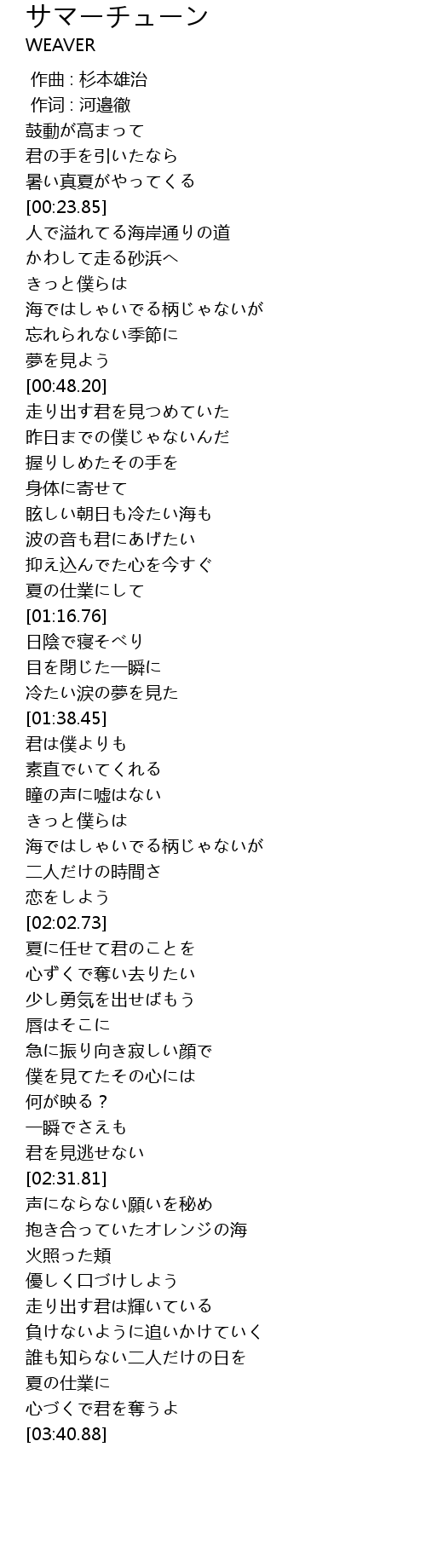 | [02:03.01] | 夏に任せて君のことを |