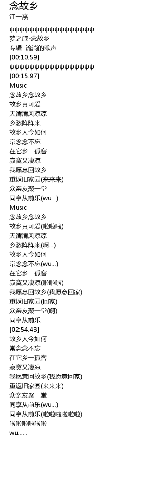 | [01:55.08] | 故乡真可爱(啦啦啦) |