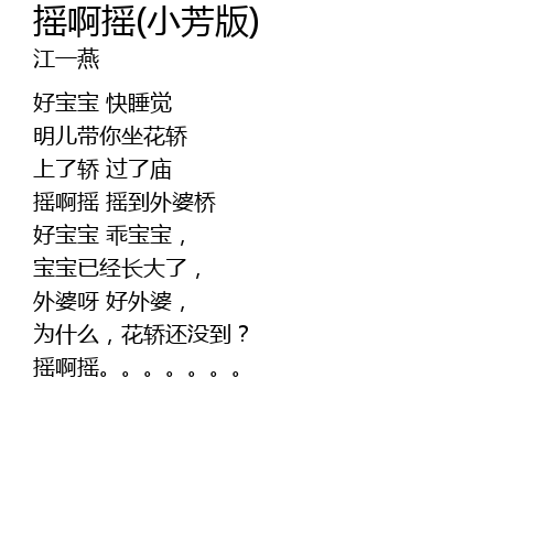 | [00:20.39] | 摇啊摇 摇到外婆桥 |