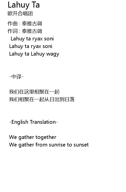 | 作词 : 泰雅古调 | |