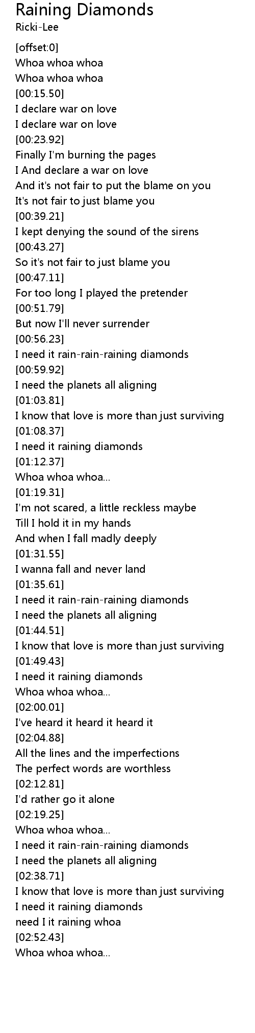 I need it raining diamonds |