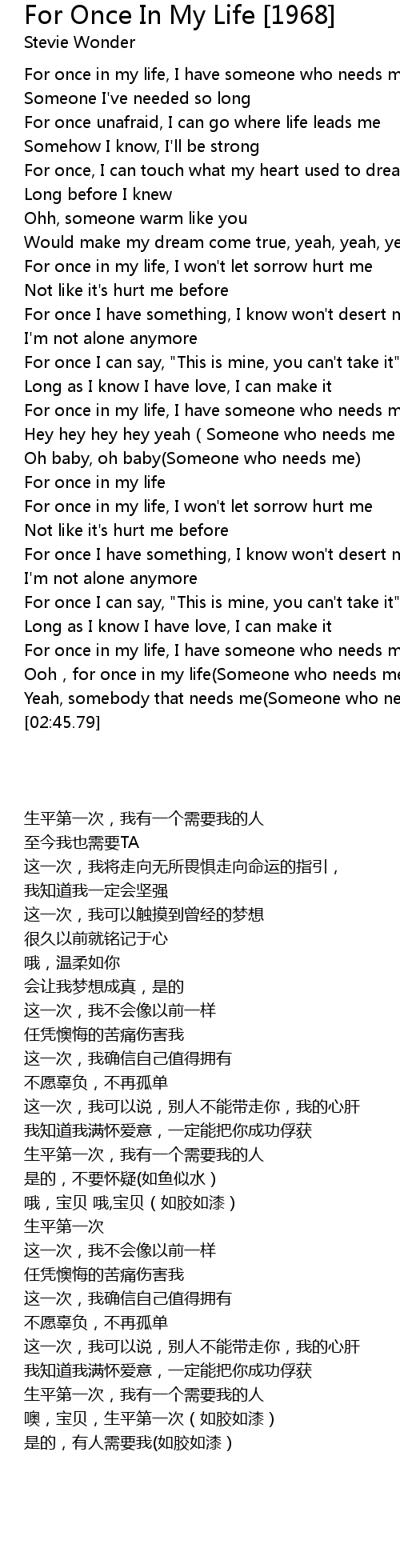 | [02:34.92] | Ooh, for once in my life Someone who needs me |