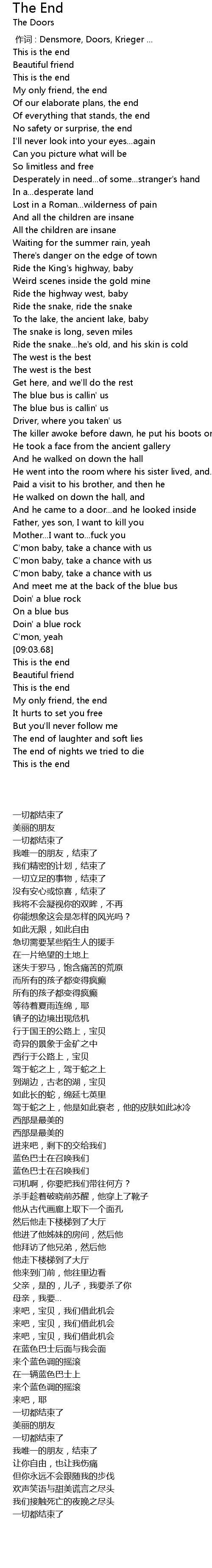 | [00:00.00] | 作词 : Densmore, Doors, Krieger ... |