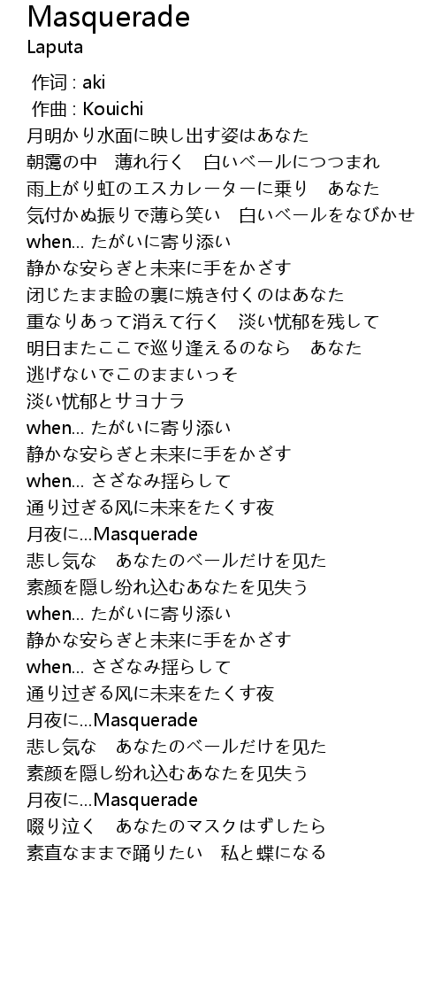 | [02:21.74] | yuè yè... Masquerade |