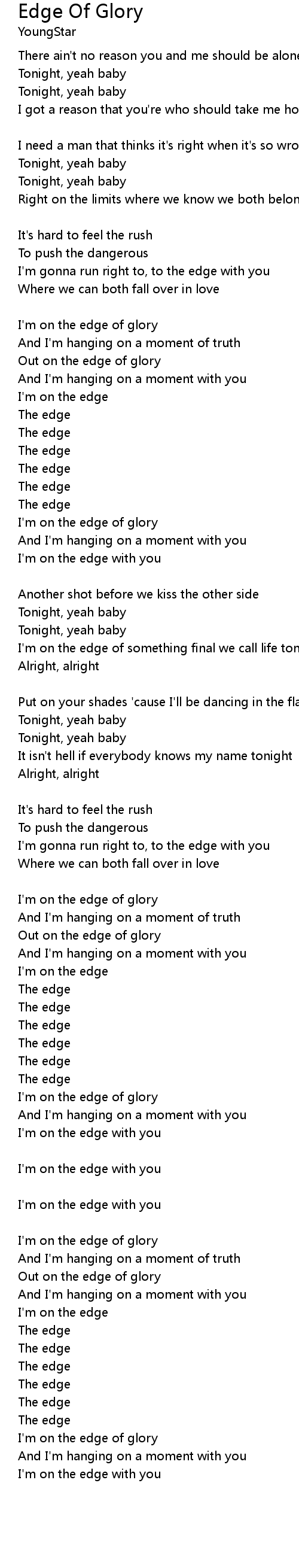 I'm on the edge of glory |