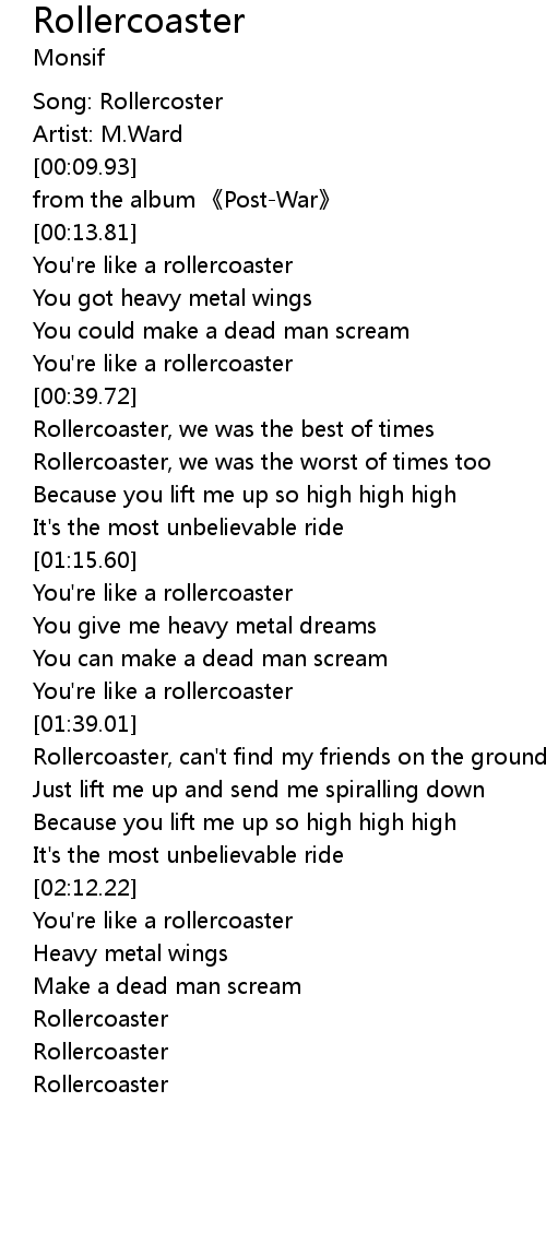 | [01:52.76] | Rollercoaster, can' t find my friends on the ground |