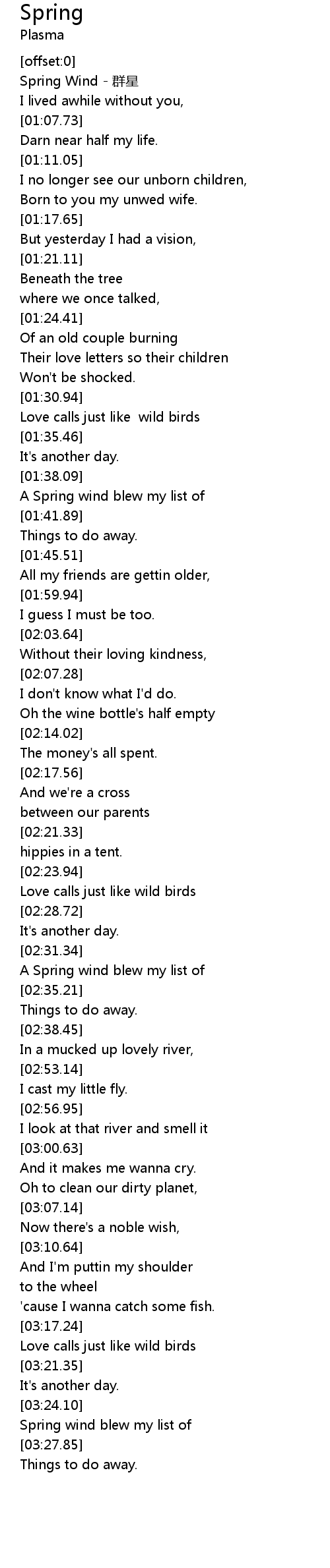 | [00:00.49] | Spring Wind - 群星 |